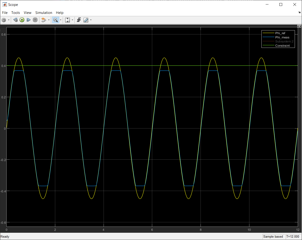 Constraint: a maximum pendulum angle that the sinusoidal reference intentionally exceeds.